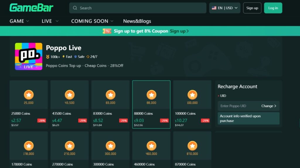 - No account ban risks reported: While Poppo Live’s terms discourage unauthorized top-ups, thousands use third-party sites like GameBar without issues. Coins deliver directly via your User ID, mimicking official methods.
